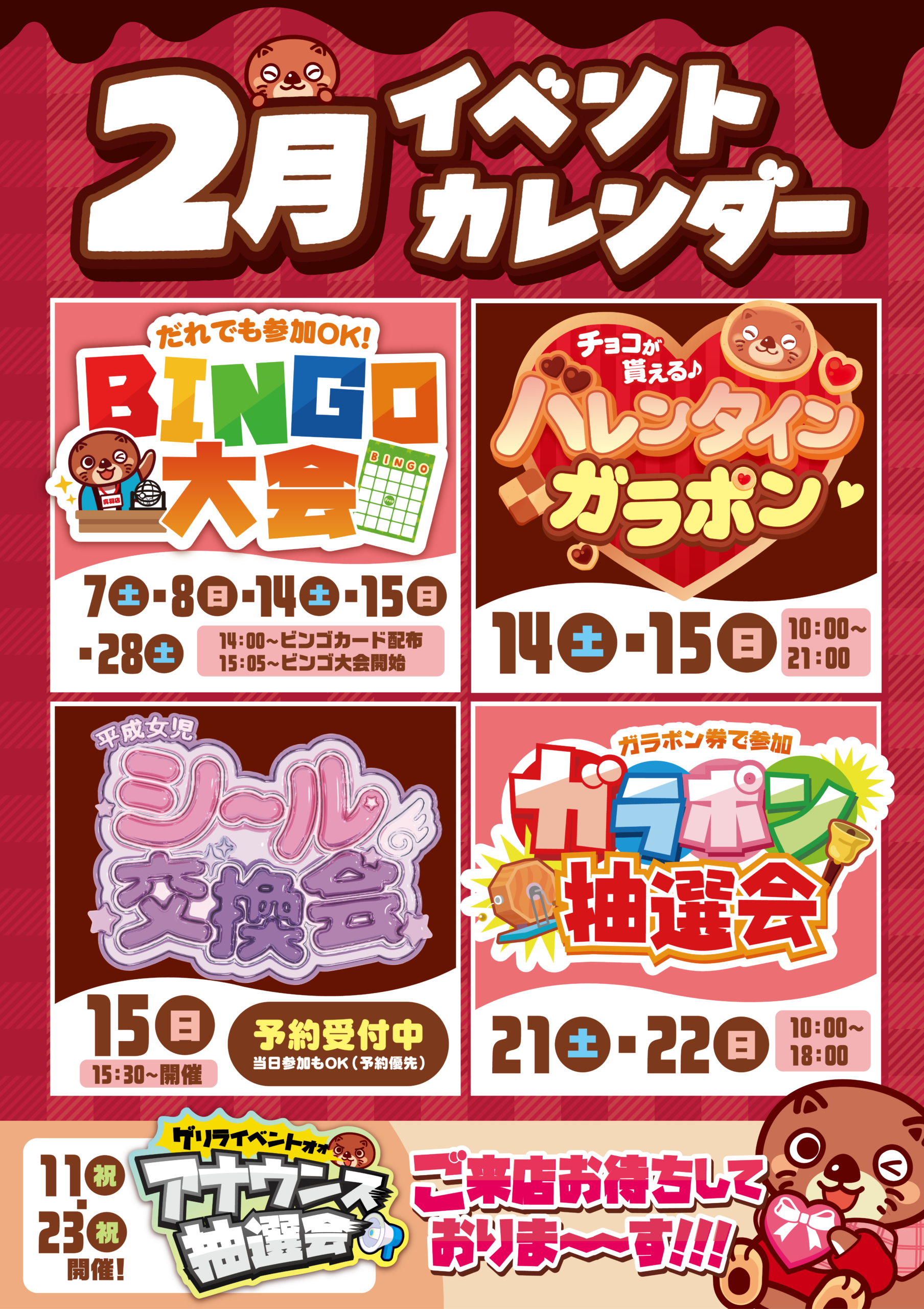 TOP 2026年2月2日 by admin SNSも随時更新中です★ 新着情報 ✨シール交換会のお知らせ✨ 今月のガラポンイベント景品おしらせ! 11/24(月)ビンゴ大会開催のお知らせ✨ ゲリライベント開催のお知らせ✅ 25th ANNIVERSARY GOLDEN BOX高価買取中⭐ ガラポン抽選会 今月の景品は?! お宝発見呉羽店イベントカレンダー📆 イベント⭐アナウンス抽選会のお知らせ⭐ ⭐新企画⭐ガンプラガチャ1000始動❕ ✨新企画✨イタリアンブレインロッドガチャ始動❢ Webチラシ 店舗紹介 お宝発見呉羽店 トレトレ倉庫 キッズスペース完備