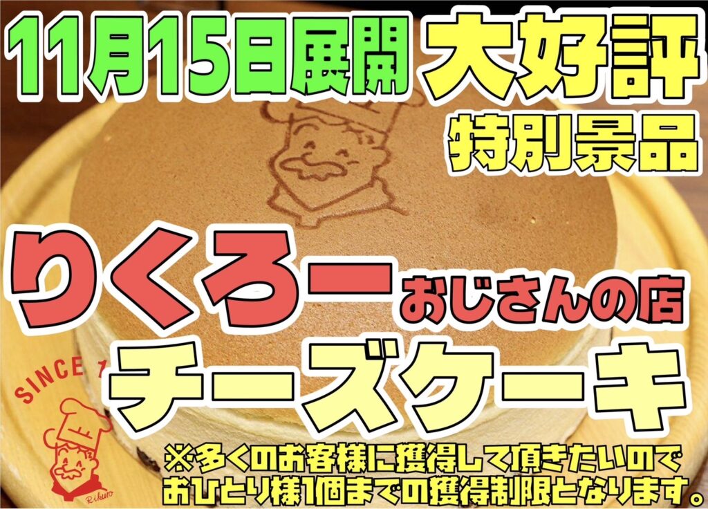 アミューズ 15日からのイベント🎪 2025年11月14日 by kureha_staff 明日15日から大好評だった、 【りくろーおじさんの店チーズケーキ】 【551 豚まん】 登場します\(`・ω・´)/ドーン 人気景品のため早くなくなる可能性あります⚠️ お早めにゲットしてくださいね🎶 X
