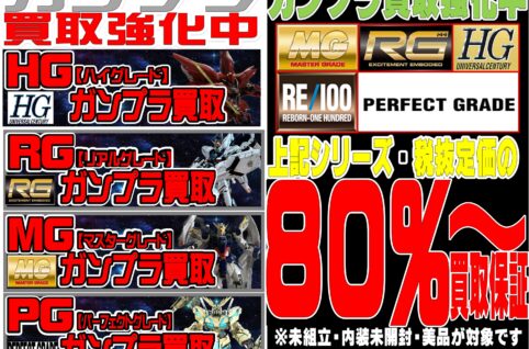 当店では只今ガンプラの買取を強化中です! ぜひ当店にガンプラをお持ちよりください!!!! ※未組立・内装未開封・美品が対象 ※限定商品は別途高額買取