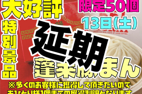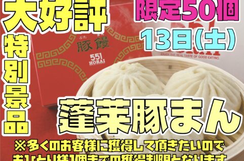 申し訳ございません🙇🏻蓬莱の豚まんの到着が間に合わず来週に延期となりました🙇🏻 りくろーおじさんのチーズケーキは開催できます急遽豚まんの代わりに別のものを開催する予定です‼️