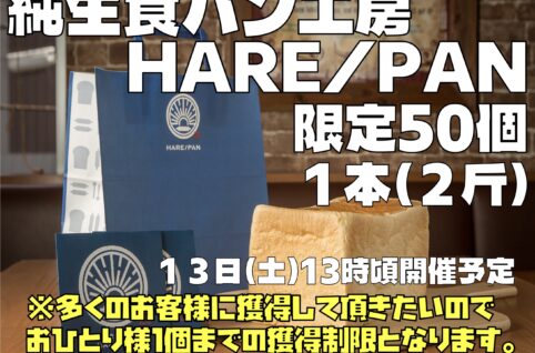 📣告知📣551の豚まんが注文できなかった為、代わりに《純生食パン HARE/PAN》が入荷します🍞💙 📆 13日(土) 13時頃〜🎁 限定50個(おひとり様1個まで) ふわっふわの人気食パンなので、気...